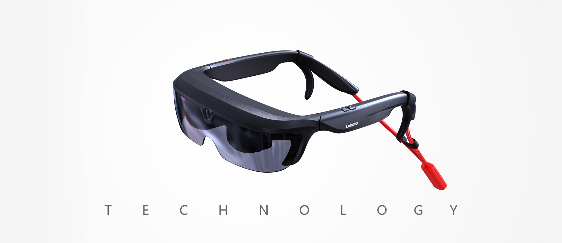 为联想设计的一款AR眼镜,包覆穿插的流线更具有未来感。