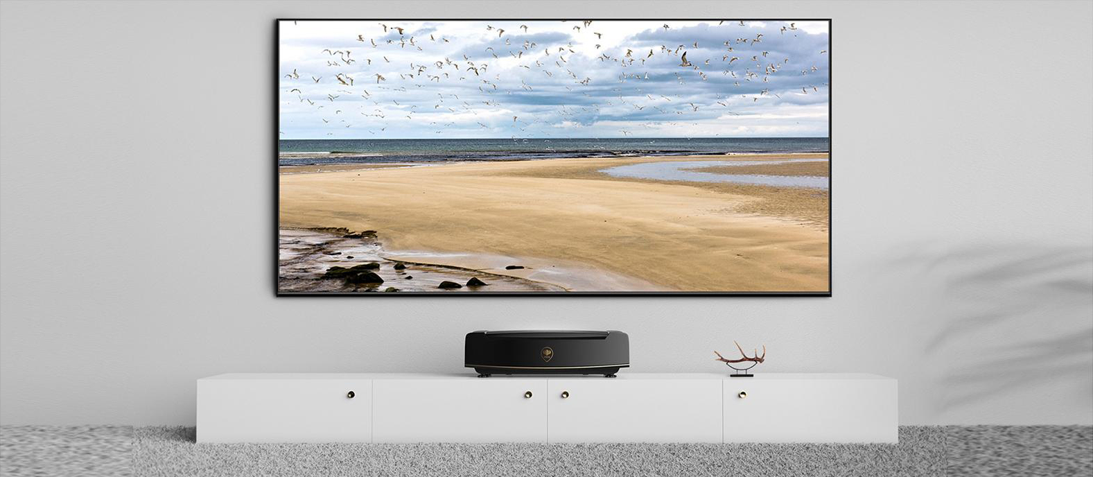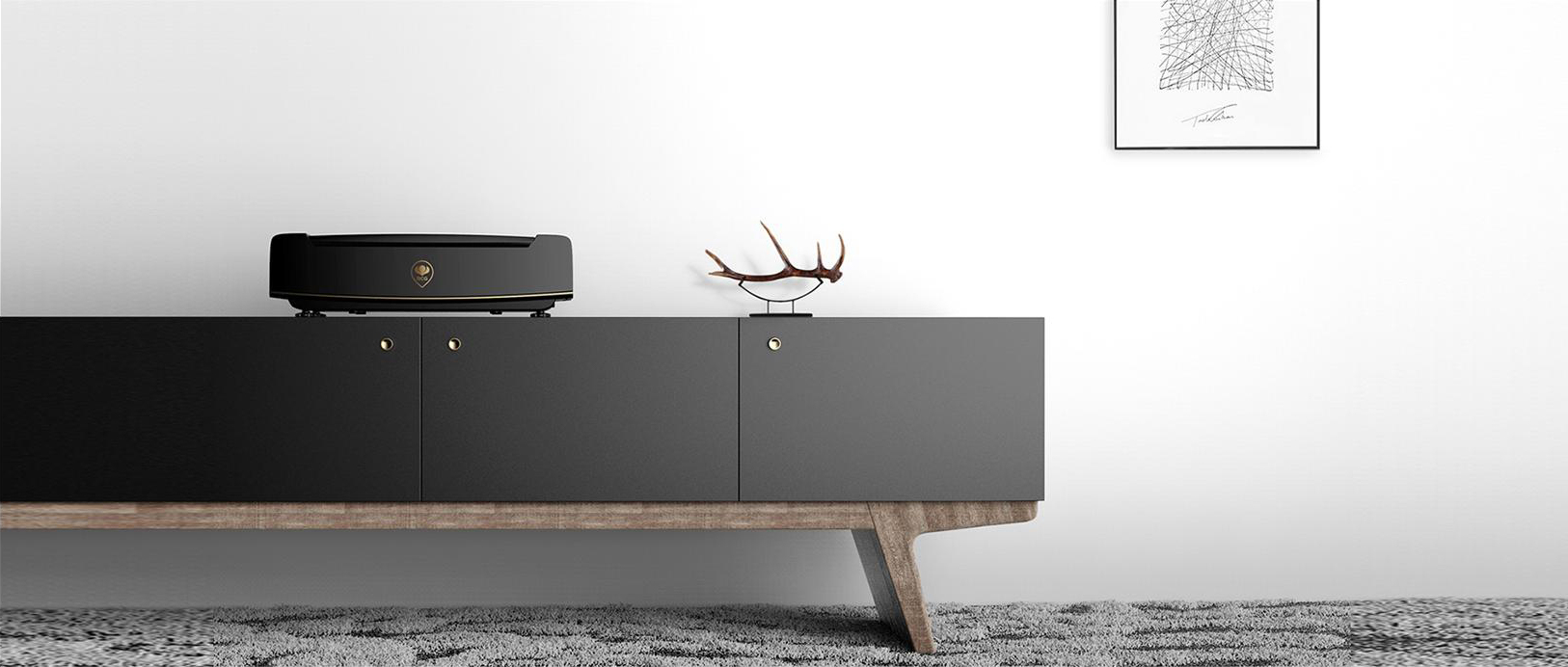 The Ruichi P1 is an ultra-short-throw laser projector that can project a ,100-inch 4k screen at a close distance from a wall, giving the user an immersive,wrap-around movie-video experience. The ultra-short range technology, which utilizes emitted light for projection, is used in place of a traditional large screen and eliminates eyeglass fatigue. The simple and elegant design language matches the home environment with colorful accents of rose gold to enhance the sense of value, and it also serves as a decorative feature in modern vina spaces.