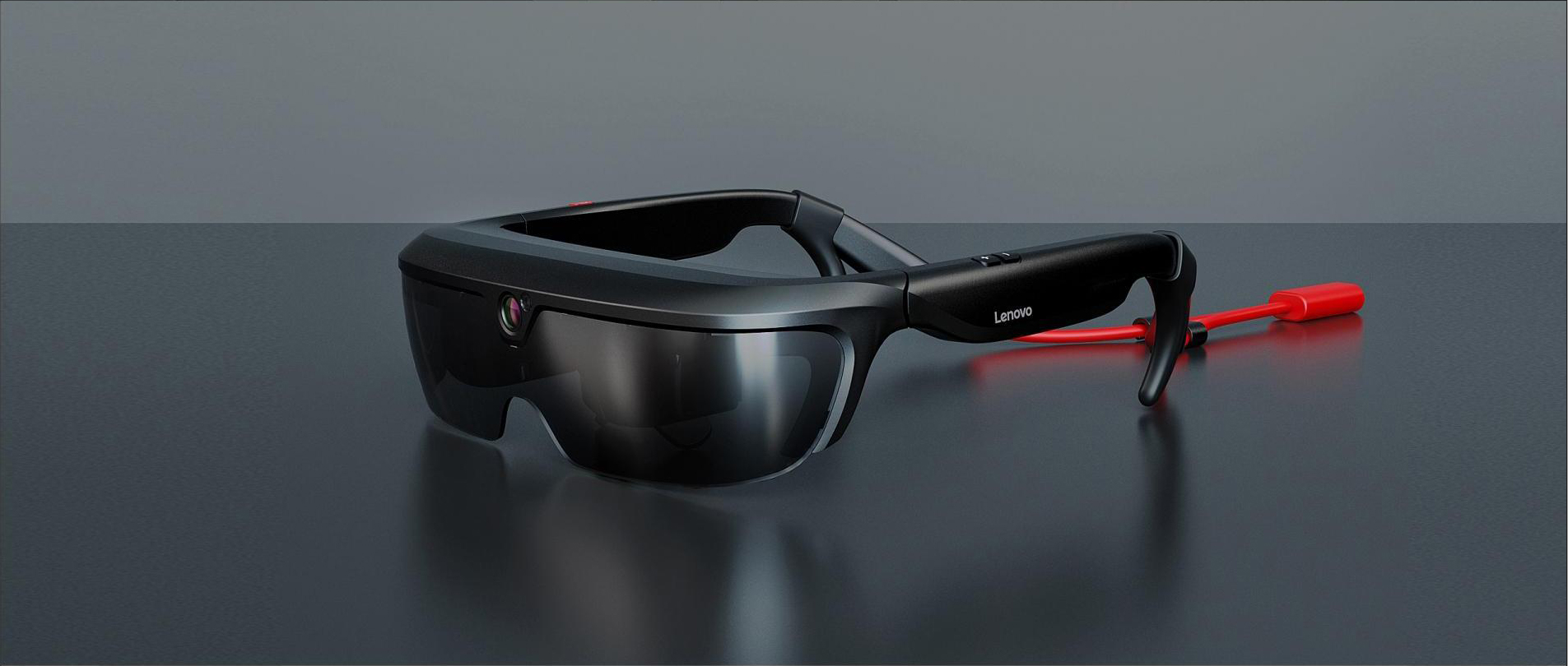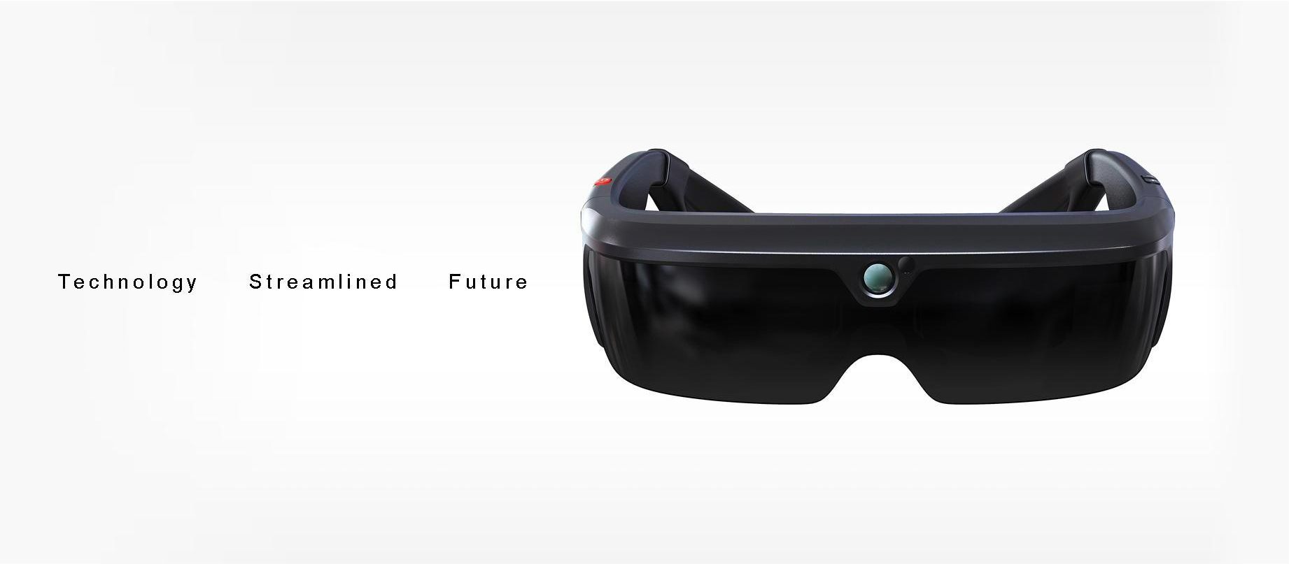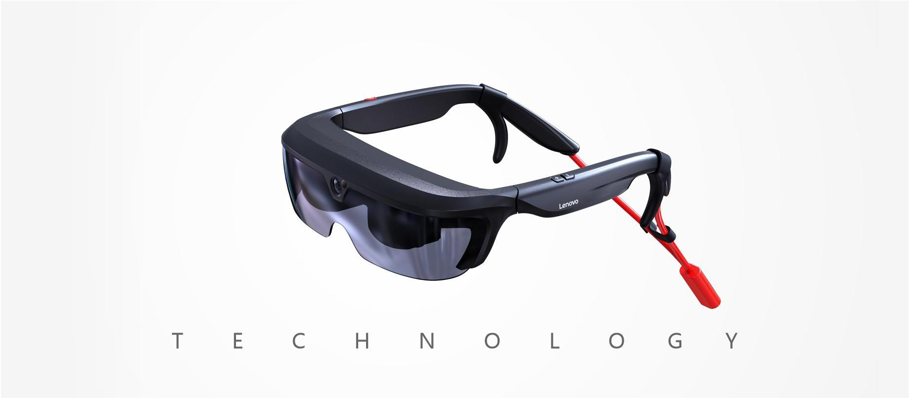 An AR glasses designed for Lenovo, wrapped and interspersed with streamlines for a more futuristic look